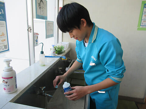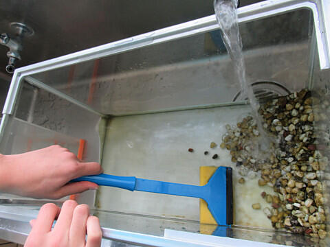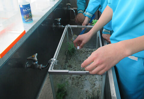 異動した先生から受け継ぎ、3年生が入学した時からずっと育てています。今日は月に一度の水槽そうじの日です。