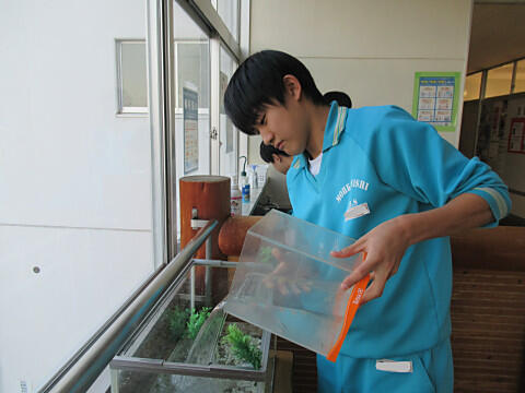 可愛いメダカたちは、これからも、受験勉強で疲れた3年生を癒やしてくれることでしょう。