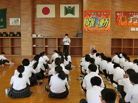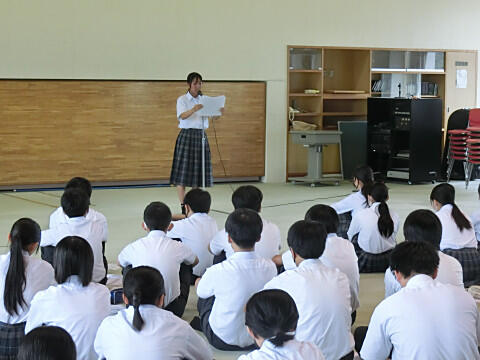 朝、学年集会が行われました。