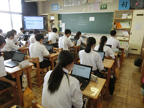全生徒がQUテストを朝の時間に実施しました。QUテストは、学級の実態を把握し、生徒一人一人へのきめ細かな支援や対応ができるように行うものです。タブレットのアンケートに答えていきます。