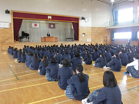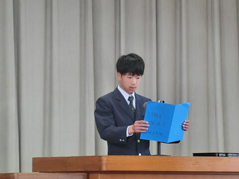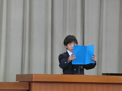 校長式辞。自立と貢献について、改めてお話をいただきました。そして4月から学年の上がる生徒たちへの励ましの言葉がありました。