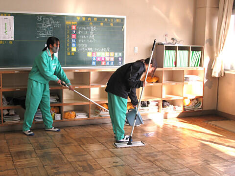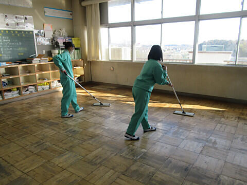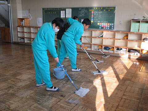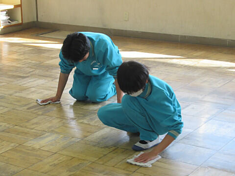 今日は教室のワックスがけのため、少し長めに清掃を行いました。