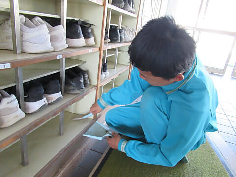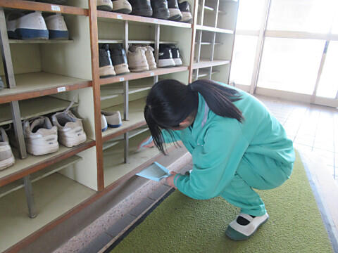 昇降口清掃では、下駄箱のひとつひとつを丁寧にきれいにしています。