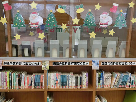 クリスマスの飾りと国語の教科書に出てくる本のコーナー