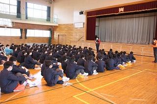 1,2年生は「学年集会」で1年間の振り返りを行いました。