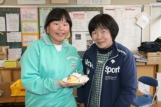 給食前に1年生が調理実習で作った「ケーキ」を披露してくれました。おいしそう!