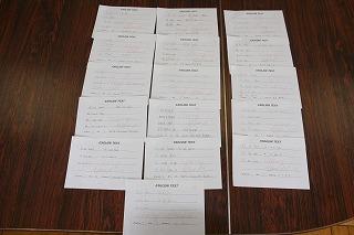 勉強がんばってます。2年2組英語のテスト。満点が16名!