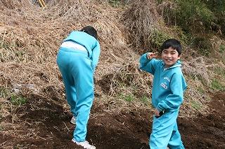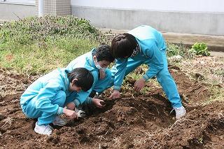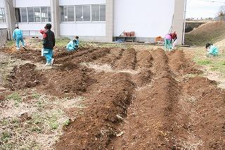 うららかな春の日差しの中、3年6、7組では畑の仕事が始まりました。
