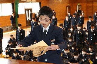 今年1年間を振り返り、新2年生として活躍してくれることを期待します。