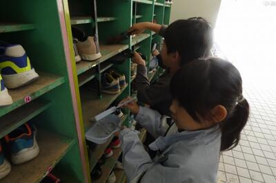 みんなで協力して、手際よく靴箱をきれいにしていました。感心です。ごくろうさま!