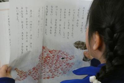 次に、みんなで「スイミー」を音読してから、感想を書きました。