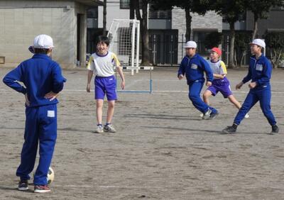 感心したのは、目の前のボールだけを見てひたすらプレーしているのではなく、自分の周りにいるの味方や敵チームメンバーの位置を意識したり、先の動きを予想したりしていること、プランに基づいて外からチームメイトに声を掛けながらゲームを作ろうとしていることです。スバラシイ!