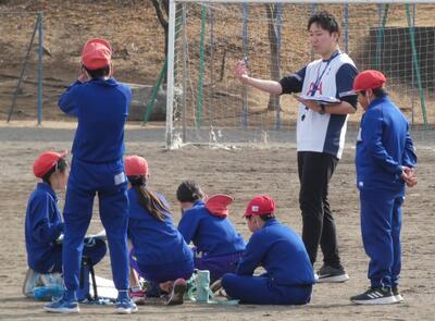 担任の先生が休憩タイムに子供たちへアドバイス。