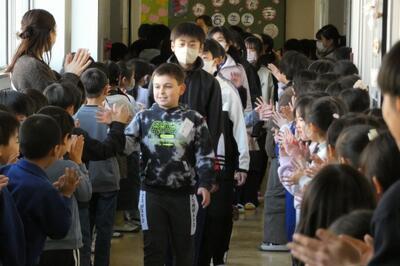 明日の卒業式がお休みとなる1~4年生が、6年生と「お別れの式」を行いました。強風と校庭のコンディションの関係で、オンラインの実施となりました。