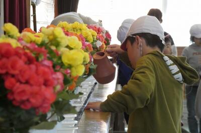 同じ頃、5年生が卒業式の式場づくりを頑張っていました。