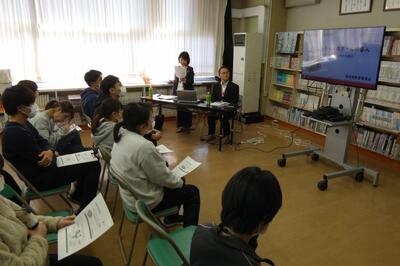 放課後、市教育委員会の担当者をお招きし、学校運営協議会制度(コミュニティ・スクール)についての勉強会を行いました。