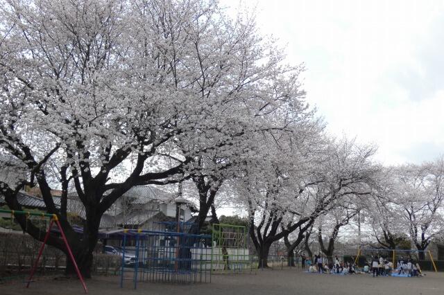 ひまわり学童さんが、サクラの木の下でお弁当を広げていました。ワイワイ楽しそう。