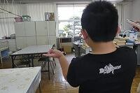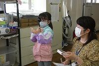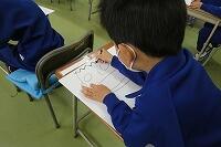 1年生の教室に行くと、机の向きが縦になっていました。図工で歯のポスターを描いていたからです。