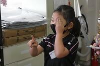 ランドルト環の切れ目の方向(上下左右)を指で示します。
