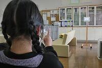 ビンゴでは教師が提示したひらがなカードと同じ文字を赤で染め、縦、横、ななめに三つそろったらビンゴです。