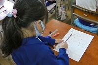 始業の8:00の後、今日は漢字テストです。2年生が真剣にテストを受けていました。