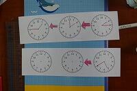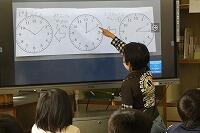 算数のミッションは時刻と時間の問題の解き方を鬼に説明し、鬼を納得させることだということを伝えました。子供たちには3通りの問題の解き方が示されました、2種類のヒントカードのうち1種類を使う、何も使わず自力で解決するのどれかです。自分で方法を選定します。