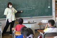 本校には今年教員になった初任者が3名います。3名が出張でいないときの代りの先生2名が今日から来てくれました。給食中に放送と電子黒板でお二方を紹介しました。