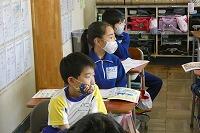 発表を聞くときに、発表者の方に体と目を向け聞く児童がいます。
