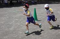スタートを待つ間、ソーシャルディスタンスを守っている4年生でした。
