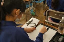 3年生の国語科・書写では毛筆の授業を行っていました。