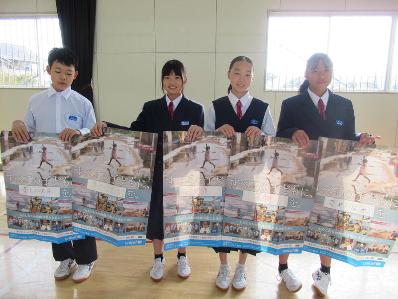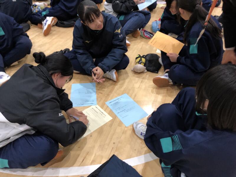 今年は、「公平と公正について」考える時間をとりました。はじめに、人権擁護委員さんから、「平等と公平の違い」や「公平と公正と平等」について説明をしていただきました。そのあと、考えるためのグループワークをして、実際に自分たちで具体例を通して、誰もが納得してハッピーになれるゴールを目指して考える活動をしました。