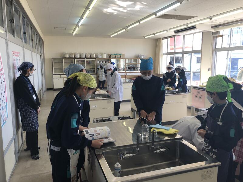 今日は、1年生の家庭科で「肉の調理:ぶた肉のしょうが焼き」の調理実習をしました。