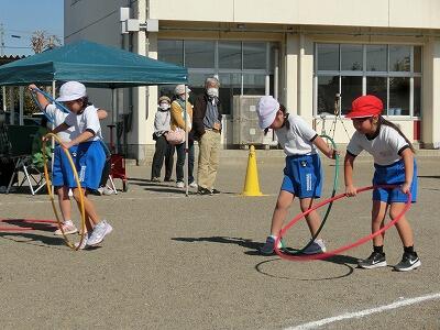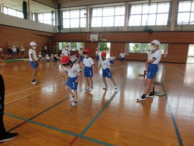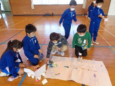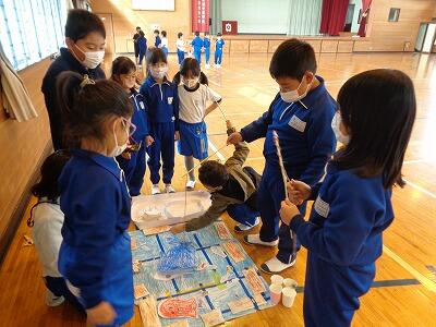 2年生が生活科の時間に作ったおもちゃでおもちゃランドを開いて、1年生を招待してくれました。2年生が遊び方を教えてくれて、みんなでとても楽しく遊ぶことができました。