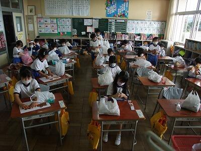 梅雨明け宣言間近の7月15日に、低学年で着衣泳をやりました。水慣れの後に、運動着を着て水の中に入った瞬間、「体が重い・・・。」などの声が聞こえてきました。ペットボトルで背浮きにも挑戦しましたが、1年生にとっては、なかなか難しく、子どもたちは何度も何度も挑戦していました。来週から始まる夏休み、安全に十分気を付けて過ごしてほしいと思います。