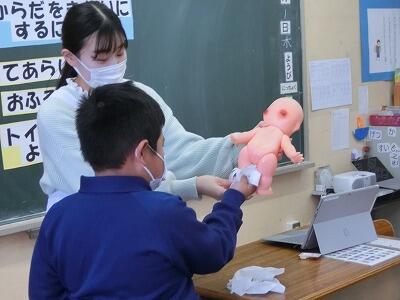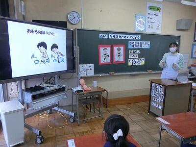 養護教諭の先生に、「からだをきれいに」の授業をしていただきました。体をきれいにすることの大切さを知りました。これからは、体のすみずみまできれいにしていきたいなどの感想が出ました。
