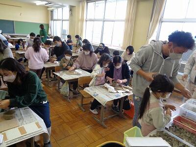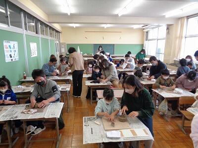 お忙しい中、家庭教育学級に御参加いただきありがとうございました。親子での陶芸教室はいかがだったでしょうか。講師の先生に作り方を詳しく教えていただいたので、親子で手際よくあっという間に作り終えていて、とても驚きました。かわいい素敵な作品ばかりで、焼きあがって学校に届くのがとても楽しみです。ありがとうございました。