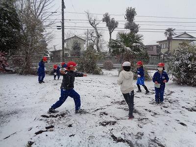 朝からちらちら雪が降り始めました。教室の窓から校庭を眺めては、そわそわ、そわそわ。今日の業間は自由遊び、やったあと歓声をあげて外に飛び出しました。全身で雪を楽しみました!!