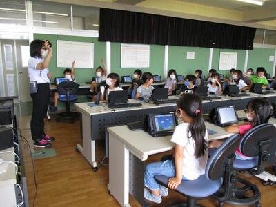 久しぶりの外国語活動が、9月に2回ありました。子どもたちは、外国語の学習が大好きで、加藤先生のお話をよく聞いて楽しく活動しています。英会話体操もずいぶん上手にできるようになりました。