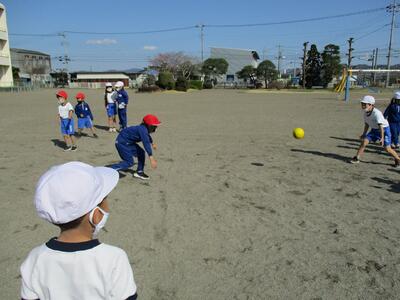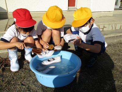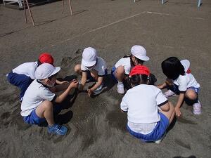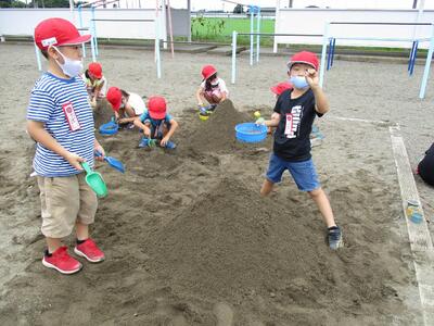 友達との距離に気を付けながら、砂遊びをしました。友達と協力しながら大きな山や泥だんごなどを楽しく作りました。幼稚園や保育園での生活を思い出していました。