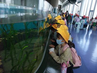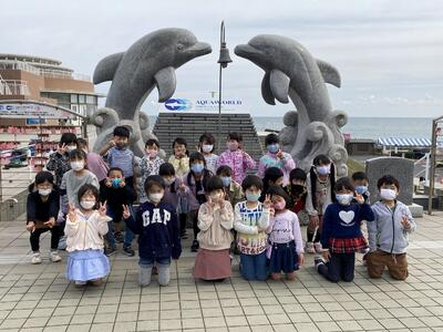 10月20日に秋の遠足で、アクアワールド大洗水族館に行きました。当日は、小学校での初めての遠足だったので、朝から元気いっぱいでした。水族館では迫力あるイルカショーを見たり、大きなサメやマンボウに目を輝かせたりと、楽しい一日を過ごすことができました。