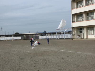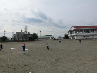 生活科の時間につくった「たこ」を校庭であげました。風はあまりありませんでしたが、懸命に走って高くあがりました。