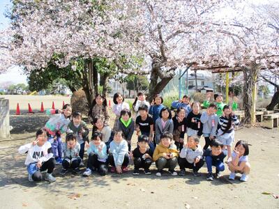 心身共に大きくなった1年生、みんなで、桜の下で写真を撮りました。1年生の思い出を胸に、4月からは2年生として頑張ってほしいと思います。