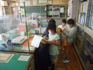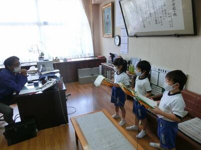 生活科の学習で「学校探検」をしました。当日までにグループの約束を決めたり、教室の入り方やあいさつの仕方をたくさん練習したりしました。どのグループも、約束をしっかり守り、楽しく探検することができました。校長室では、大きなソファに座らせてもらったり、校長先生からサインをいただいたりと、大喜びの子どもたちでした。