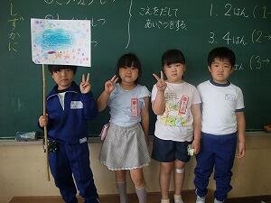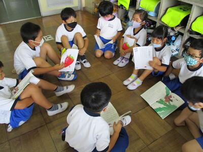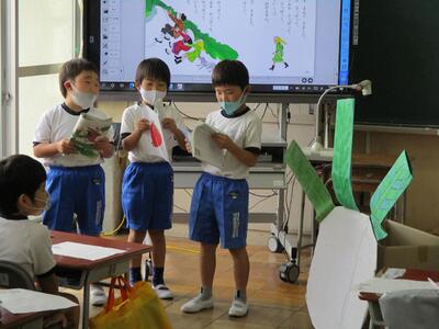 国語の「かいがら」の学習で、くまのこの気持ちを考えてセリフを付け足して音読劇をしました。自分で考えたせりふを上手に入れて発表しました。