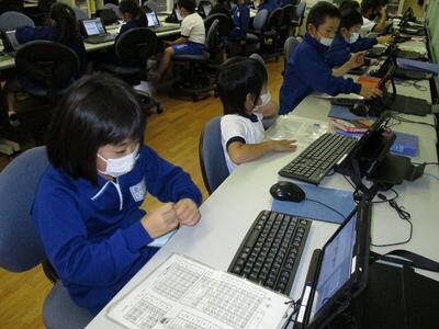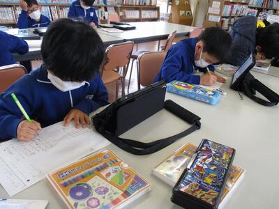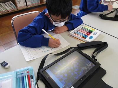 来月の学力調査に向けて、タブレットの「ドリルパーク」で復習をしています。少し前までは、「ドリルパーク」を立ち上げるまでに苦労していましたが、今では、自分のパスワードを覚えていて、一人で立ち上げることができます。問題を解いて正解すると、ポイントがたまるシステムなので、子どもたちは大変意欲的に取り組んでいます。