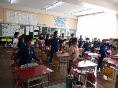 今日で令和3年度が終了です。最後に、みんなで集合写真を撮りました。すっかりお兄さんお姉さんになり、逞しさを感じます。楽しい春休みを送り、4月8日に元気に登校してください。保護者の皆様、1年間大変お世話になりました。