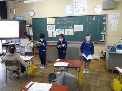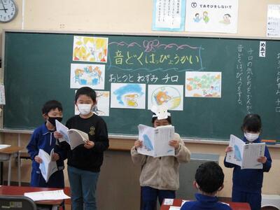 11月下旬から2週間学習した国語「おとうとねずみ チロ」の音読発表会を行いました。場面の様子や登場人物の行動から、チロの気持ちを想像し、音読に表す学習をしました。発表会では、全員が「チロ」になりきって上手に音読することができました。