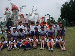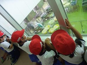 生活科見学で、第2学校給食センターと市の総合運動公園に行きました。給食センターでは、給食を運ぶトラックや野菜を切る機械などを見ました。おいしい給食を作るために、調理員さんが一生懸命に仕事をしていることが分かりました。総合運動公園では、暑さに負けず、たくさんの遊具で思いっきり遊びました。滑り台やターザン遊びが人気でした。