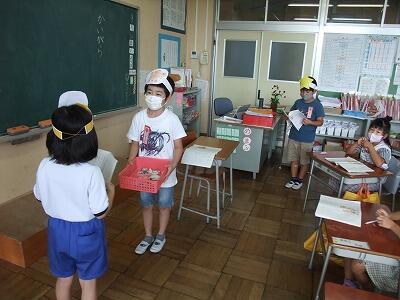 4校時と5校時に「お楽しみ会」を行いました。前半は、「いすとりゲーム」と「ハンカチ落とし」、後半は、「王様ドッジボール」です。みんなで楽しく遊びました。1年生の思い出がまた一つ増えました。