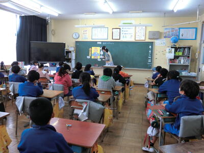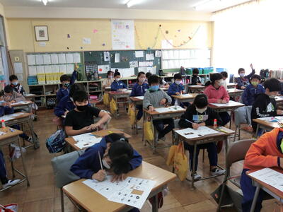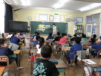 社会福祉協議会の方と一緒に,総合的な学習の時間「共に生きよう」(福祉)